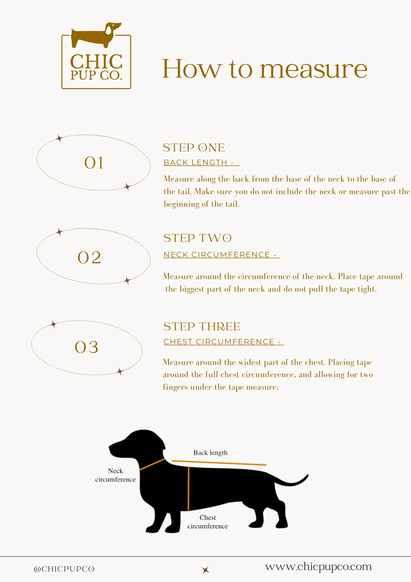 Finding the perfect size for your dachshund is a breeze with our full range of standard sizes. But we know that every dachshund is unique, which is why we also offer the option for custom made sizes. Simply provide us with your pup's measurements, and we'll create a coat that fits like a glove.