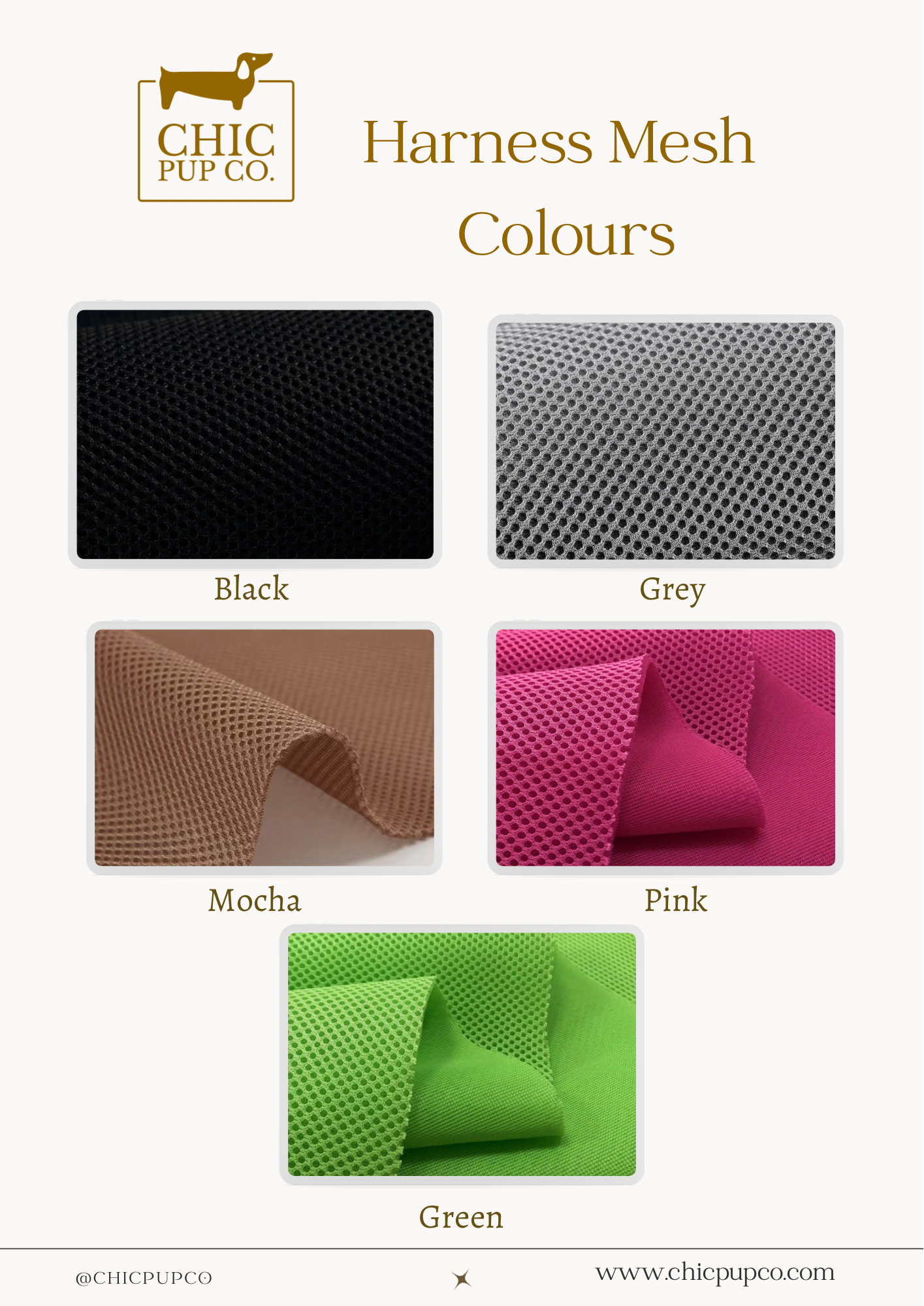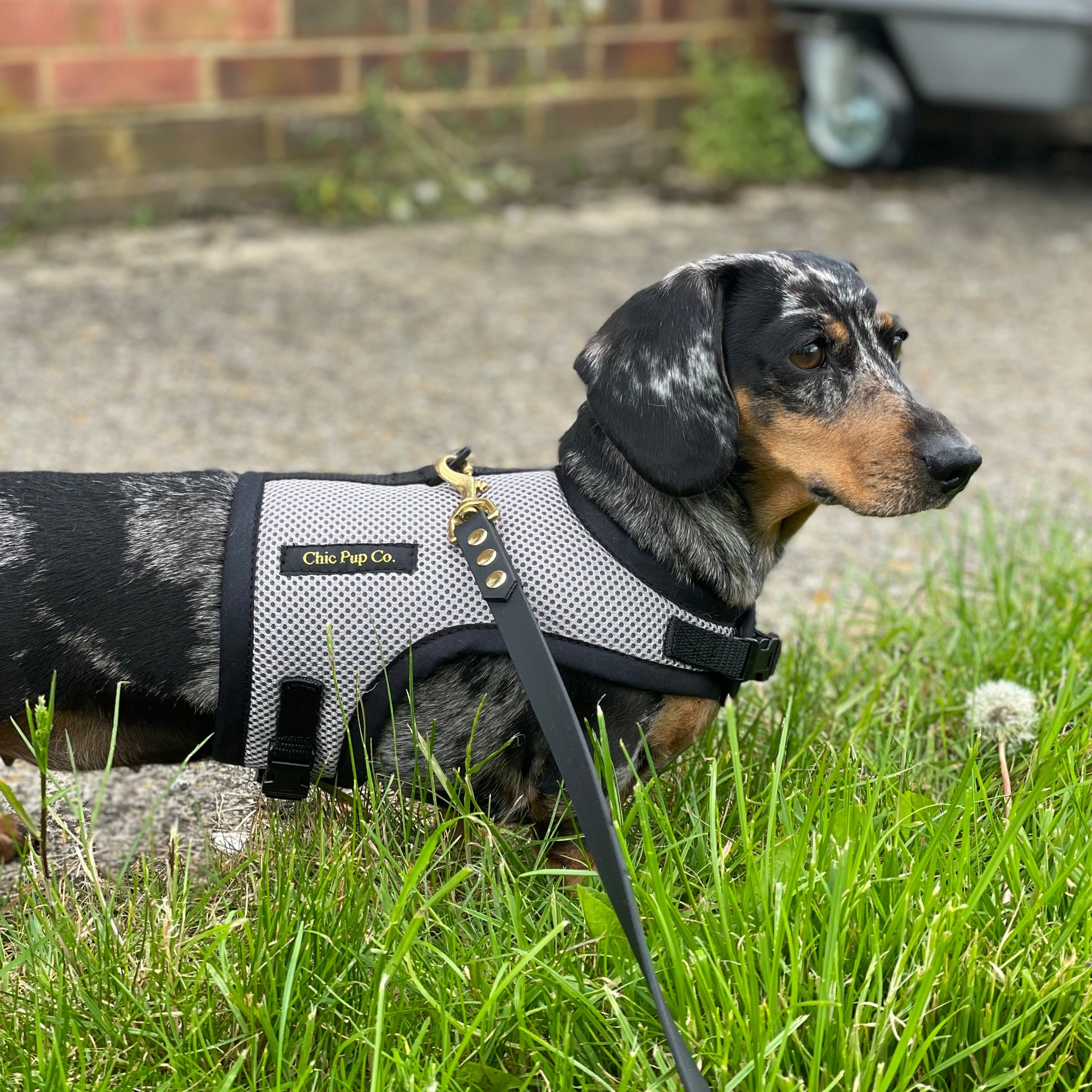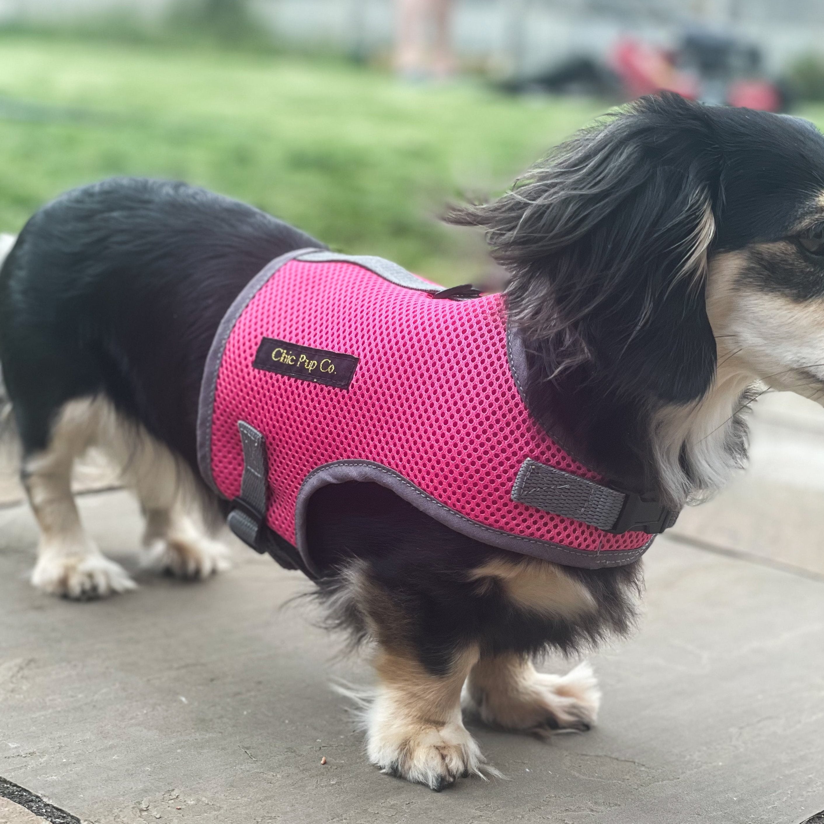Made from soft and breathable materials, this harness provides year-round comfort and support. This harnesses is made with a breathable spacer mesh. Say goodbye to discomfort and hello to ultimate freedom of movement with the Chic Pup Co. Custom-made for a flawless fit, the length of the harness perfectly aligns with a dachshund's back, guaranteeing both style and functionality!