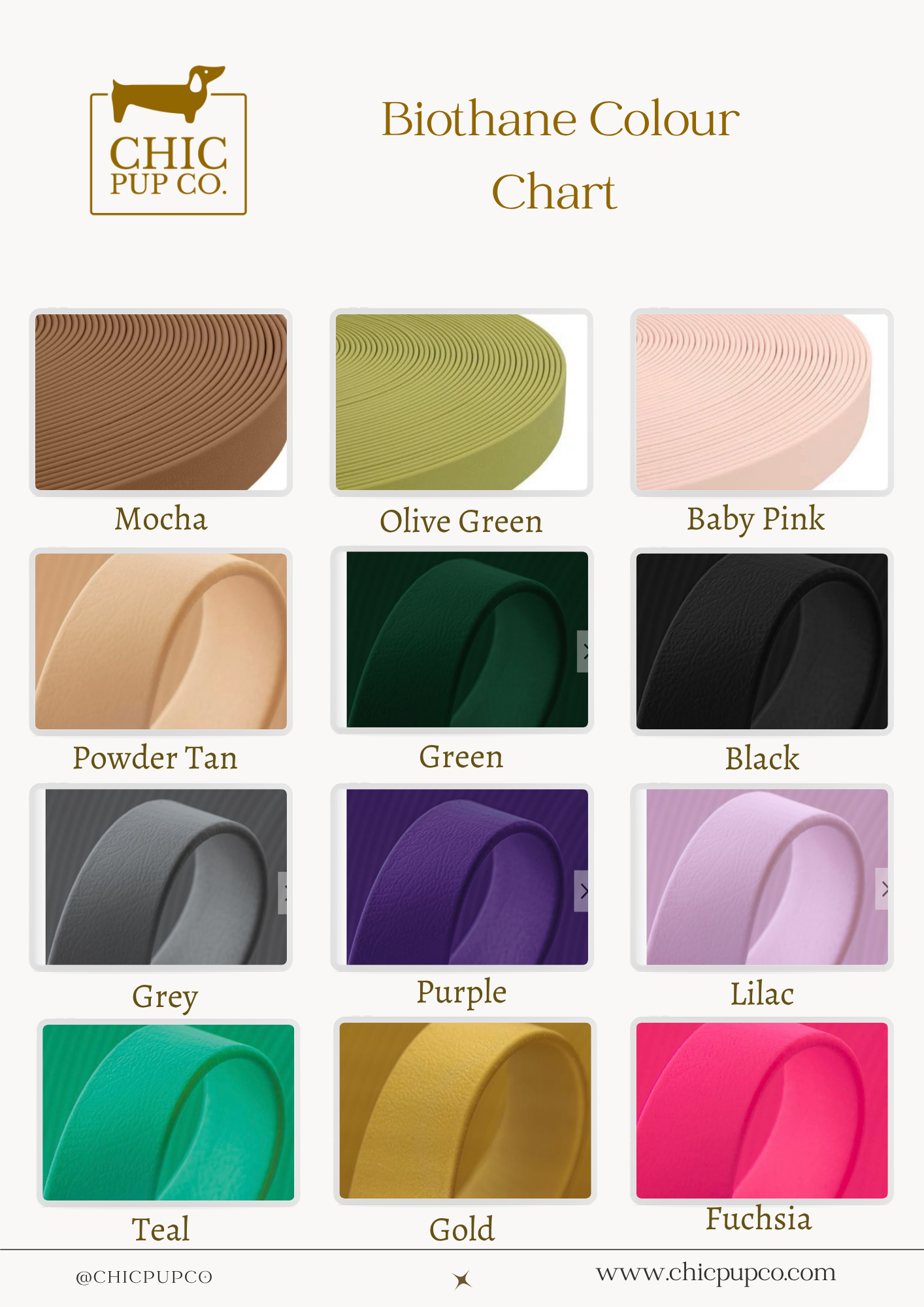 BioThane holds its colour beautifully over time and is fully waterproof, soft, and easy to clean—ideal for active dogs and everyday use.